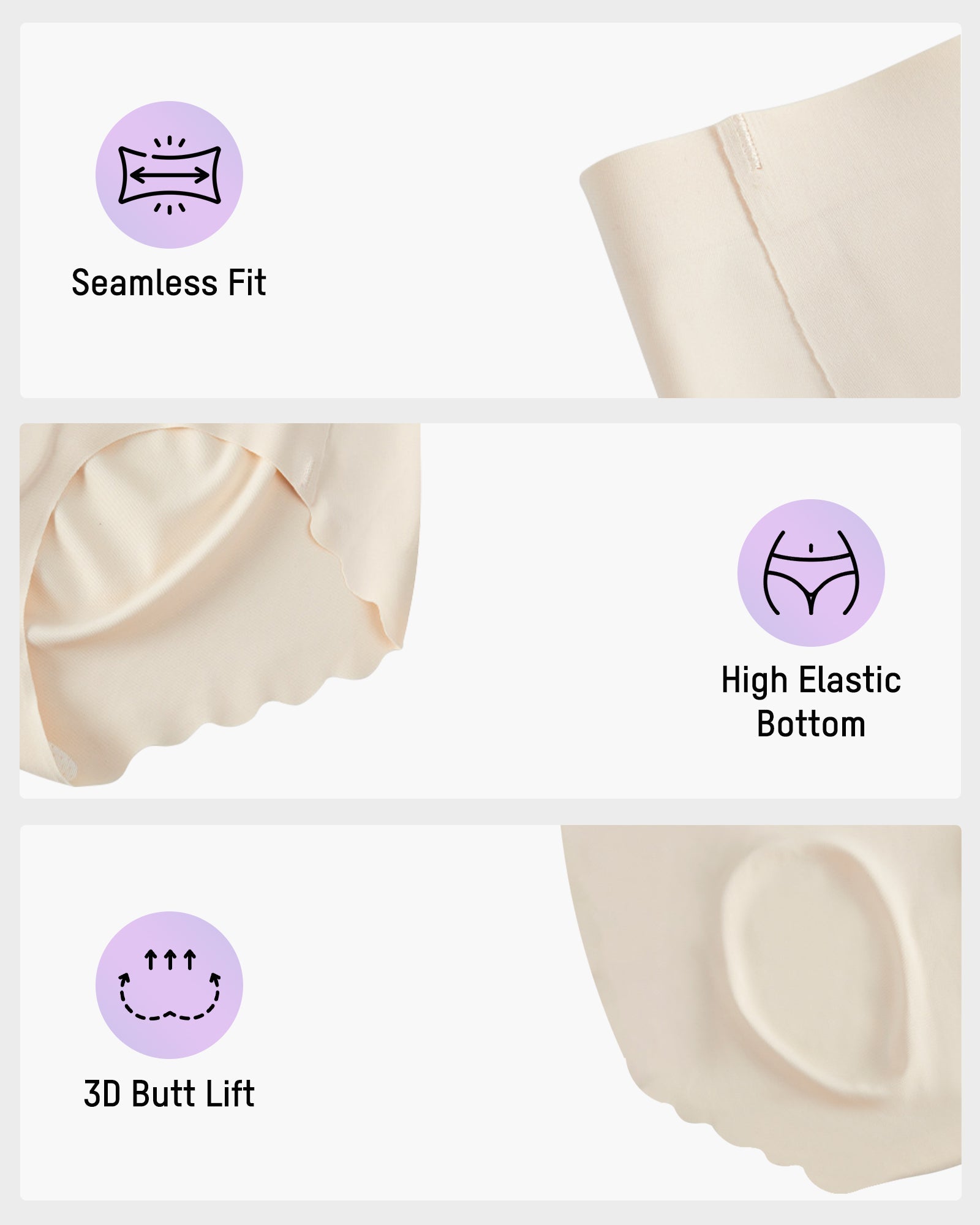 Comfort That Moves With You High-stretch fabric adapts to every motion—whether sitting, squatting, or working out—without rolling, shifting, or losing shape. It feels so light you’ll forget you’re even wearing it.