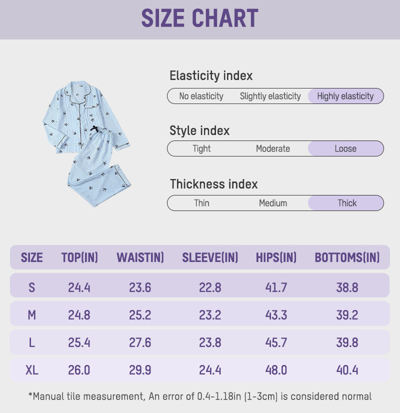 All-Season Versatility With its moderate fabric thickness and easy-to-style design, this pajama set keeps you comfortable through every season, day or night.