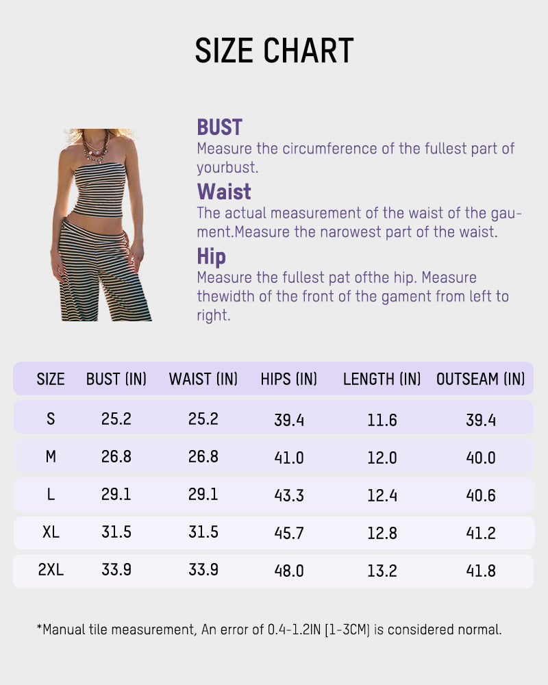 Turn heads this summer with this effortlessly cool striped two-piece set. Featuring a flattering elastic tube top and relaxed wide-leg pants, this outfit blends comfort and street-style edge in one easy look. Whether you're lounging, strolling, or heading out with friends, this set offers the perfect mix of sexy, casual, and comfortable.